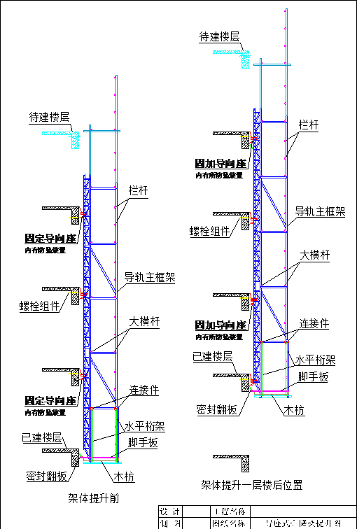 7) 升降过程中遇到停电等情况时,操作工人在架子没有完全固定好以前不能离开升降现场。